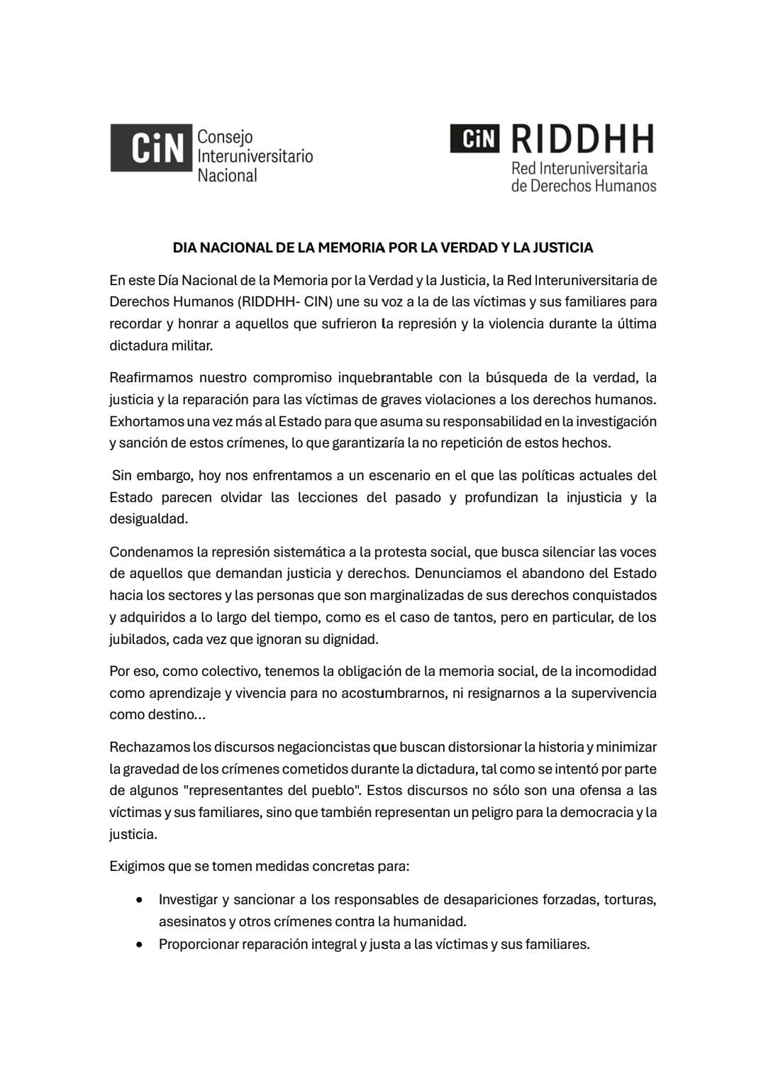 Declaración RIDDHH 24-03-2025