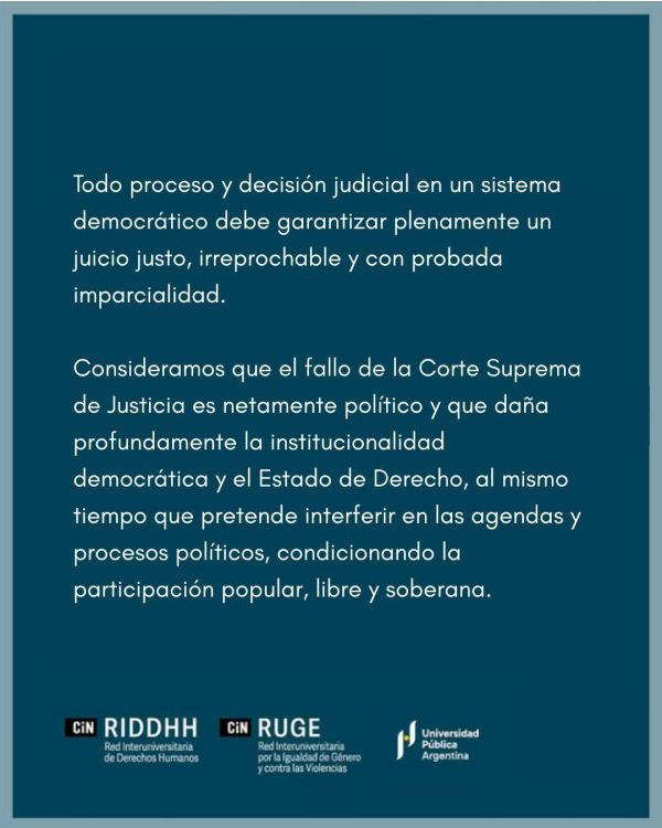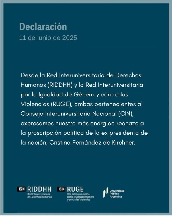 >> Declaración RIDDHH-RUGE sobre la proscripción política de Cristina Fernández de Kirchner