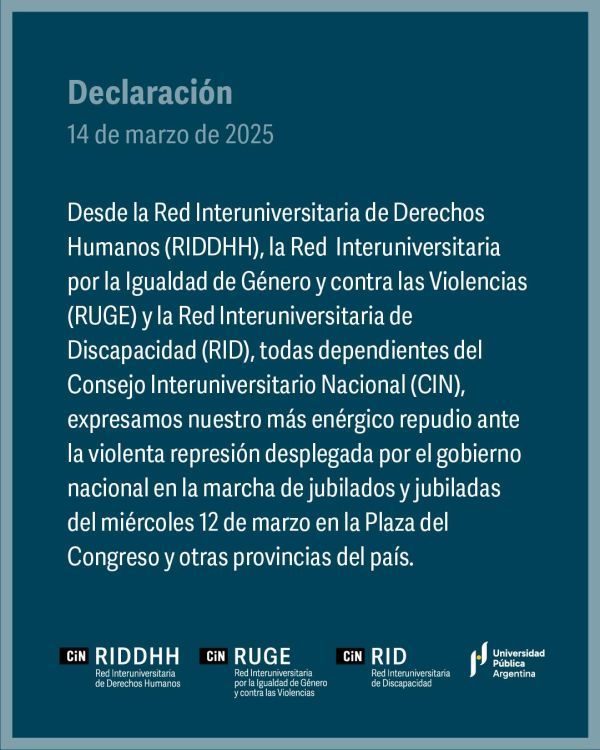 Declaración RIDDHH-RUGE-RID del 14 de marzo de 2025 | CIN
